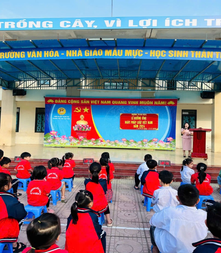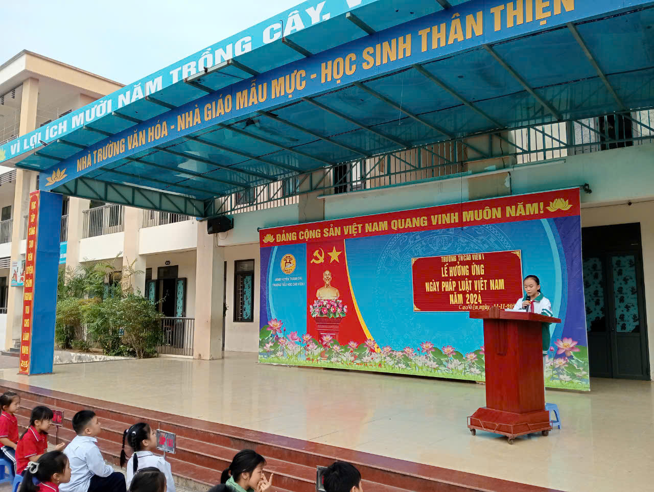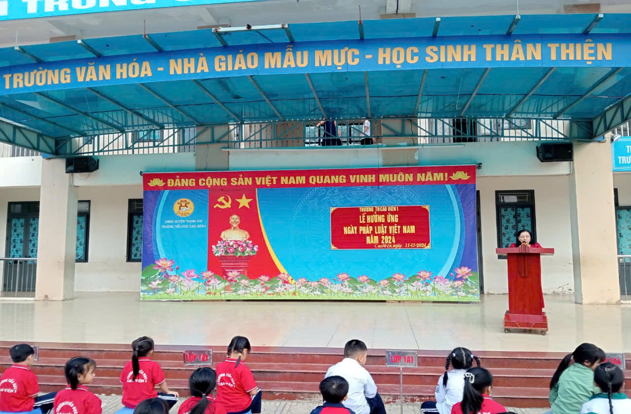 HƯỞNG ỨNG NGÀY PHÁP LUẬT NƯỚC CHXHCN VIỆT NAM 09/11 Ngày Pháp luật Việt Nam hàng năm là dịp quan trọng để chúng ta cùng nâng cao nhận thức và ý thức chấp hành luật, góp phần xây dựng một xã hội trật tự, công bằng và văn minh. Ngày này không chỉ là cơ hội cho mỗi cá nhân, tổ chức tự động kiểm tra lại việc tuân thủ pháp luật mà còn là dịp để nhắc nhở chúng ta về vai trò của luật pháp trong cuộc sống hàng ngày. Hưởng ứng Ngày Pháp luật Việt Nam Sáng ngày 11/11/2024, được sự chỉ đạo của Ban giám hiệu nhà trường, Liên đội trường TH Cao Viên I tổ chức Hưởng ứng Ngày Pháp luật Việt Nam nhằm tuyên truyền rộng rãi đến CB, GV, NV và các em học sinh trong nhà trường ý thức thượng tôn pháp luật, sự hiểu biết và khả năng thực thi pháp luật trong mọi hoạt động. Ngày Pháp luật được tổ chức nhằm tôn vinh Hiến pháp, pháp luật, giáo dục ý thức thượng tôn pháp luật cho mọi người trong xã hội. Đồng thời, tăng cường nhận thức của mọi người về vai trò của luật pháp trong đời sống, tăng cường sự hiểu biết pháp luật và khả năng thực thi pháp luật trong hoạt động quản lý nhà nước, hoạt động kinh tế – xã hội và sinh hoạt hàng ngày của người dân Việt Nam.