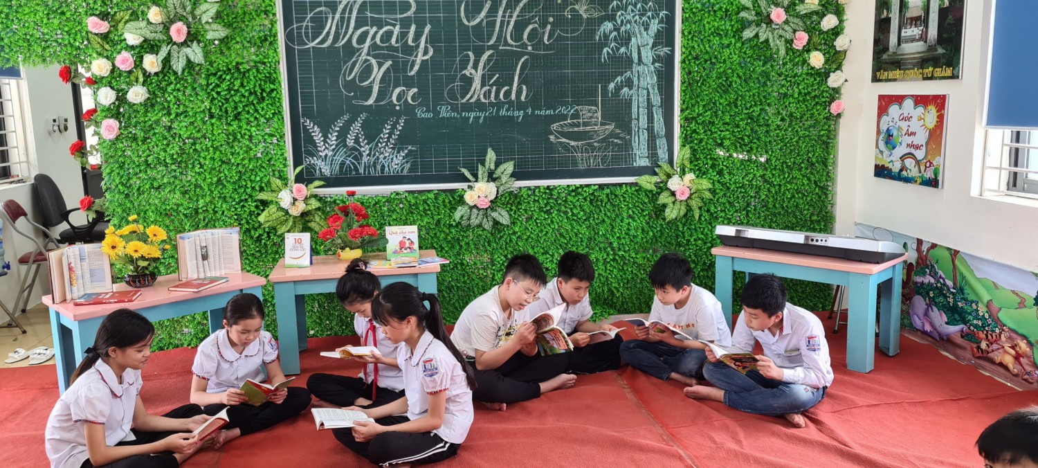 Hôm nay ngày 21/4/2022 thư viên trường Tiểu học Cao Viên I tổ chức ngày hội đọc sách. Đã tổ chức cho các em, đọc sách, trả lời những câu hỏi đố vui, hát, qua đó tuyên truyền cho các em ý nghĩa của việc đọc sách giúp các em tìm được nhiều kiến thức trong sách vở từ đó khích lệ các em tham gia đọc sách nhiều hơn.